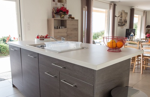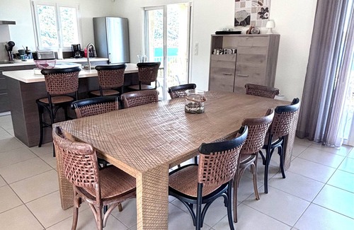 - 1 large main room living/dining room/fitted American kitchen (fridge/freezer, oven, vitro hob, microwave, dishwasher, coffee makers, island, lots of storage, large table for 10 people, 1 real sofa bed comfort, 2 independent armchairs and a large flat screen TV).