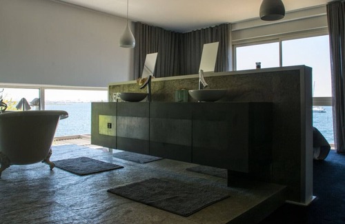 With stunning views over the Laguna of Sète this peaceful property is a conversion of a former industrial building into a modern luxury villa with private direct access to the water. It is composed of 3 double bedrooms on the first floor and a large bedroom with a double and a single bed on the ground floor.