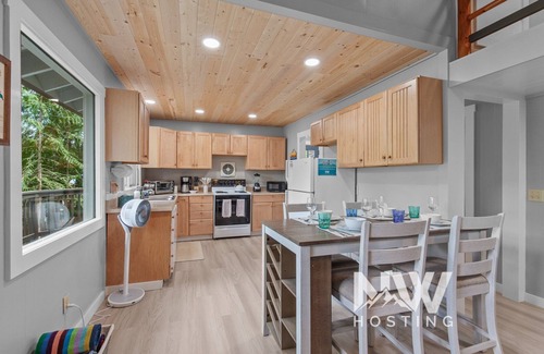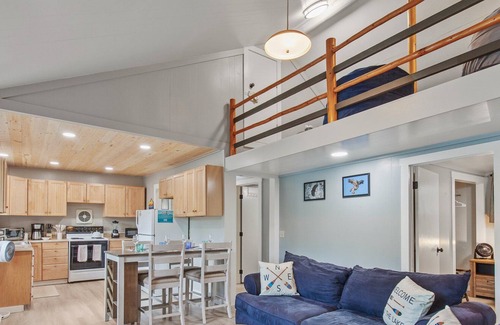 Inside, the cabin offers a cozy, welcoming feel with warm wood accents and thoughtful touches throughout. The loft adds a bit of extra space and charm, making it ideal for family getaways or small groups. The fully equipped kitchen has everything you need to cook up your favorite meals, and modern conveniences like a Tesla charger make your stay as effortless as it is relaxing.