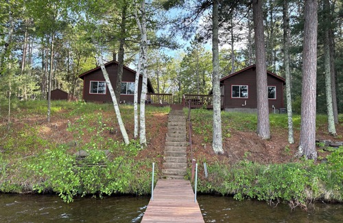 Relax at this peaceful place to stay. Located on beautiful Lower Webb Lake. Cabin 2 (3218) has two bedrooms: 1 Queen bed and 2 Twin beds. Rent each cabin separately or together (Webb Lake Cabin 1 3214, listed seperately). Each cabin has two bedrooms, living room, kitchen and bathroom. The cabins share a large adjoining deck. Pontoon boat for rent, call for availability. Lake features Oak Ridge bar/restaurant (travel by pontoon or road), lake is great for swimming and fishing.