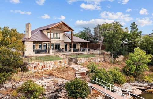 Waterfront with dock just 15 minutes from Rocker B Ranch. This expansive open concept property is ideal for hosting a group at the lake! Professional grade appliances, a double island, large dining area and oversized outdoor patio! Enjoy the Pool and Hot tub that overlook beautiful Possum Kingdom Lake! Outdoor fireplace, grilling area, ample parking and more! This property is also located minutes from all the local PK restaurants and shops!