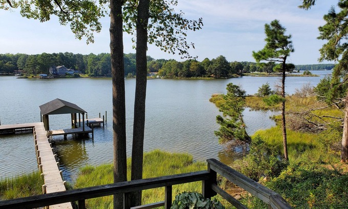 Dive into this charming waterfront cottage with eclectic decor to relax, renew, and rediscover. Relax on the deck or dock staring at the mesmerizing water during the day or gazing at the stars at night. Renew with yoga or meditation in the sunroom, or a bubble bath in the bathtub. Rediscover nature while fishing/crabbing or watching a variety of birds from waterfowl to soaring eagles. With a variety of spaces to choose from, lose yourself reading or writing a good book or find yourself trying something completely new. Feed your soul with good nutrition by whipping up your own culinary creations in the fully equipped kitchen or on the gas grill or try someone else's creations with an outing to a local restaurant. Sleep soundly on queen size beds with fresh linens and pillow toppers in bedrooms with room darkening blinds and remote-controlled ceiling fans. If surfing is more your speed, you can surf the internet or stream your movies/shows on the TV or your devices with high-speed internet via Wi-Fi. For those with a more adventurous spirit, a pier with covered boat slip offers opportunities for boaters, kayakers, jetskiers, sunbathers, and swimmers alike. A 4 ft mlw (mean low water) depth makes docking your watercraft simple.