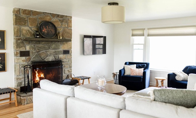 Ancient sycamore trees tower over the property, adding a haven of rest and wonder. A working farm can be viewed from the cozy front porch. Enjoy a paddle boat, row boat or kayak adventure down the Mill Stream, just steps from the cottage. Linger at your own private firepit in the oasis of calm and quiet, don't forget the stargazing + smores!
