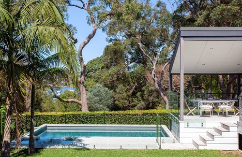 Mirroring its peaceful surroundings, this spacious 4-bedroom home exudes, natural elegance and a resort-style vibe. Natural light and a clever airflow fill the main living space with an outdoorsy calmness, mirrored in the breathtaking natural straw ceiling which cocoons the room in a remarkable piece of architecture and engineering. Beneath the soft ceiling, you’ll find a variety of open-plan living spaces that you’ll be hard-pressed to leave. An open-plan kitchen is in the centre of the space, where brilliant white countertops reflect the light across the convenient island and breakfast bar. To the left of the kitchen a hardwood dining table is the setting for glamorous formal dinners, seating up to 8 guests. Adjacent to the dining table is your first living area, where deep blue sofas offer a cosy escape from the day. A second sitting area is available on the other side of the kitchen, where a lighter arrangement of squashy grey and white chairs are arranged around a modern fireplace - ideal for cooler daytimes. Boasting purpose-designed entertainment this home delivers a memorable escape for the whole family. Downstairs there is a gym area and yoga space, with free weights for a morning workout. Head back up to the main living level, you’ll also find a games room with a ping-pong table, and dartboard, as well as a bar and fridge, which opens directly to the deck. From here keep active with a few laps in the heated pool, or take a more restful approach making full use of the spa facilities. Better still sink into the outdoor sofas and admire the water view, as you cook up an alfresco feast at the BBQ. Or feeling energetic, shoot some hoops in the front garden or take out the paddle board or canoe on the Lane Cove river, accessed from the back yard gate that takes you directly onto the picturesque Tambourine Bay park and waterfront jetty area.