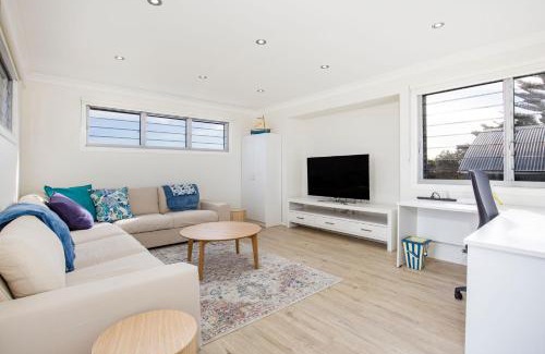Watermans Pet Friendly 1 Min Walk to Beach offers accommodations in Culburra Beach, a 2-minute walk from Warrain Beach. This beachfront property offers access to a patio, free private parking, and free Wifi. Offering a terrace and sea views, the spacious vacation home includes 3 bedrooms, 2 living rooms, flat-screen TV, an equipped kitchen, and 2 bathrooms with a shower. Towels and bed linen are offered in the vacation home. The property has an outdoor dining area. Guests can make the most of the warm weather with the property's barbecue facilities. Shellharbour Airport is 49 miles from the property.