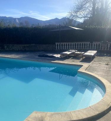 Watermill in the mountains with private pool is located in Montastruc-de-Salies, just 31 miles from Col de la Crouzette and 15 miles from Saint Lizier Church. This property offers access to a terrace, free private parking, and free Wifi. The accommodation provides luggage storage space and private check-in and check-out for guests. The vacation home consists of 6 bedrooms, a living room, a fully equipped kitchen with a dishwasher and a kettle, and 4 bathrooms with a walk-in shower and a bidet. Guests can take in the views of the mountain from the balcony, which also has outdoor furniture. There's also a seating area and a fireplace. Yoga is available at the property. Guests can swim in the outdoor swimming pool, relax in the garden, or go skiing or hiking. Comminges Golf Course is 27 miles from the vacation home. Toulouse-Blagnac Airport is 56 miles away.
