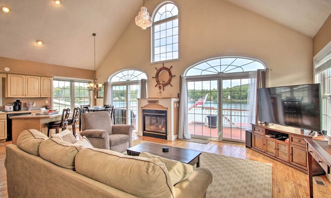 A laid-back family getaway is in store at this waterfront haven, which is complete with generous amenities and easy access to lake recreation, scenic hikes, and vibrant views of the famous New England fall foliage!