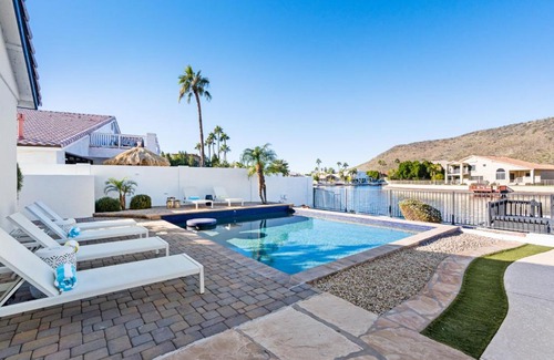 Waterside - Lavish Lakeside Property with Heated Pool and Pontoon Boat offers accommodations in Peoria, 5.6 miles from Deer Valley Rock Art Center and 11 miles from Castles and Coasters. The air-conditioned accommodation is 22 miles from Phoenix Convention Center. Free Wifi is available throughout the property and Copper Square is 22 miles away. The vacation home features 3 bedrooms, a fully equipped kitchen with a dishwasher and an oven, a washing machine, and 2 bathrooms with a hair dryer. Towels and bed linen are provided in the vacation home. For added privacy, the accommodation features a private entrance. Guests can also relax in the garden. Musical Instrument Museum is 13 miles from Waterside - Lavish Lakeside Property with Heated Pool and Pontoon Boat, while State Farm Stadium is 15 miles away. The nearest airport is Scottsdale Airport, 19 miles from the accommodation.