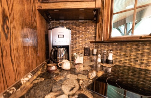 To wind down enjoy a glass of wine or bourbon on the hand-carved bar located in the center of the home.