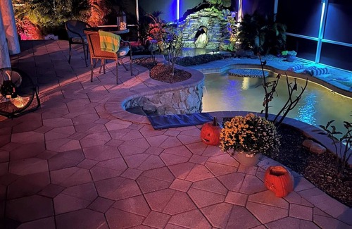 You must scroll through the pictures twice to take it all in. This private oasis serves as a mini resort for you and your closest friends and family. Once you arrive, you will have no desire to leave. This home is about comfort, relaxation and entertainment. Outdoor space is incredible. With cascading water and beautiful illumination, the pool is the focal point. Pool heat is available in the winter months . Fee $20 per night. POOL HEAT MUST BE REQUESTED AT LEAST 48 HOURS PRIOR TO YOUR DESIRED START TIME. Hot tub, Koi pond, outdoor kitchen, fishing dock. Home is shrouded in privacy. All property maintenance is done every Thursday pool, koi ponds and butterfly garden must be accessible.