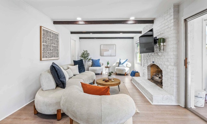 Step inside this fully renovated home, where brand-new kitchen appliances, elegant furnishings, and cozy decor create an inviting atmosphere. The home comfortably sleeps 8 guests and features Smart TVs in every room with high-speed WiFi, perfect for entertainment or remote work. The chef-inspired kitchen is fully stocked for home-cooked meals, while the in-home laundry room adds extra convenience for longer stays. Outside, enjoy a fenced-in backyard, a private oasis for both relaxation and pets. With a 2-car garage and ample driveway parking, there’s plenty of space for vehicles. Whether you’re here for work or leisure, The Waterview Retreat is your ideal home away from home.