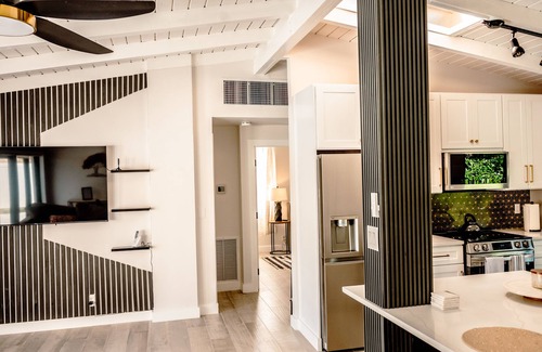 The transitional 3-bedroom, one-bath rental with a waterfront view offers a perfect blend of comfort and style. As you enter the spacious living room, you are greeted by natural light streaming in through the large windows overlooking the serene waterfront. The open floor plan seamlessly connects the living room to the modern kitchen, complete with stainless steel appliances, sleek countertops, and ample cabinet space.