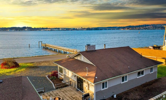 As you approach this home in the beautiful Port Orchard community, you will be greeted by non stop water views of the Sinclair Inlet, marinas, and the Seattle ferries. Once arriving at the house, a gorgeous covered front porch with built in seating overlooking the water will welcome you to begin relaxing! Enter the house and be mesmerized by the expansive windows covering the entire front wall with panoramic views of the water. Comfy seating, a large smart TV, and game table will give you plenty of amenities to entertain the family (please note, the fireplace in the living room is not operational and is for esthetic purposes only). A fully remodeled and stocked kitchen awaits on the other side of the living room for you culinary expertise! The kitchen should have all you need for cooking - you just bring the food! A dining room sits off the kitchen, leading to the back porch. Enjoy your time on the back porch BBQing, eating your meals on the large patio table, playing cornhole, ping pong, and disc golf, and ending the night with a campfire while you watch the always changing water views!