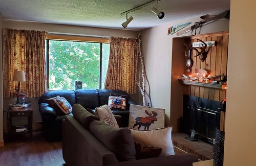Sleeps 5. Enjoy a cozy living space and mountain views.