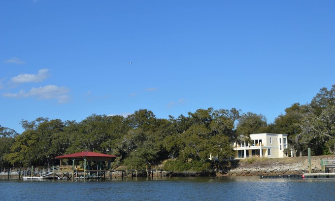 Delightful upscale accommodation with beautiful panoramic water views. Room with private bathroom and large balcony overlooking water. 10 minutes to Charleston city center in quiet neighborhood. Guests arriving by boat have private dock facility at the property. The beautiful waterfront views from the bedrooms, spectacular sunsets, and available crabbing and fishing dock right on the Intracoastal Waterway all contribute to a most memorable stay.