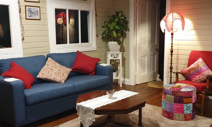 the current owner. Comfortable one bedroom house, oozing simplicity and charm. Timber verandah with BBQ over looking the Waukivory Valley. Galley kitchen, laundry and bathroom ,main living/dinning has an elegant wood fire. The property is set on two acres, wonderful for bird watchers and wildlife lovers. Just relax and enjoy the valley.