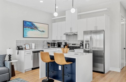 * Two fully equipped modern kitchens with stainless steel appliances, cookware, and coffee stations