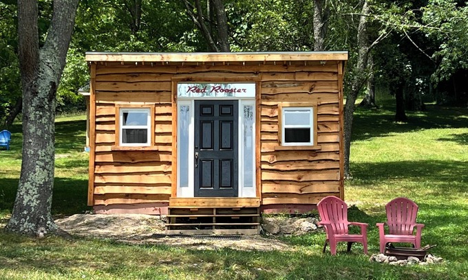 Way Up Acres is a 50-acre farm/homestead. This cabin site comes with a queen size bed and a futon. There is electric to the site but no water. We have a bath house available in close proximity to the cabin. We provide bed linens only. You need to bring your own towels and soap. The Rustic Red Rooster cabin site has a fire ring, picnic table, ac, tv with dvd player and a fan for those warm days and nights. Our Cafe and Marketplace are located next door in the big metal building. Come grab a bite to eat and shop. We have farm animals that you will fall in love with and a lot of area to go hiking if you like to. The stars and fireflies are amazing at night. Beautiful views all around. If you are looking to get away from the hustle and bustle of everyday life, then this is the place for you. Pastures everywhere you look. Moncove lake is about 10 minutes away where you can fish and kayak and with a community swimming pool. We are close to Humpback bridge, Cheese n more store, bakery, hanging rock observatory, Jefferson National Forrest, Greenbrier State Forrest, Falling Springs Falls, caverns and more. We are about 10 mins to a very small town with grocery store and about 45 mins to Lewisburg which is voted best small town in USA where there is more shopping and bigger stores along with antique stores.