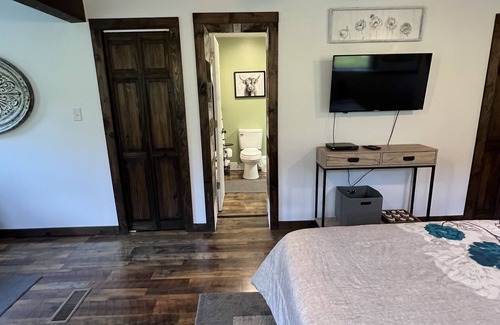 Way Up Acres and Lodging is a 50-acre homestead/farm. Come sit back and relax while listening to the creek across the road and farm animals. You will fall in love. We have lots of farm animals and room to walk around or hike our mountain. Relax and enjoy the beautiful views all around you. Enjoy a homesteading atmosphere with the comforts of home. This is a campground atmosphere. Our Cafe and Marketplace are located next door at the big metal building. Come grab a bite to eat and shop This Farmhouse was built in 1901. It has been added onto through the years, but it still has a lot of charm and character. A lot of the flooring is original and creaky, and the doors are squeaky. You have 2 decks to sit back, relax and enjoy the sounds of nature and beautiful views. There are many animals on the farm for you to pet and feed and some will probably greet you as well.