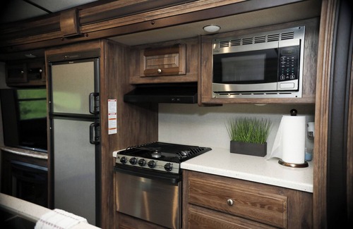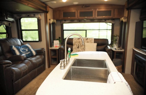 There is a full bath inside the camper.