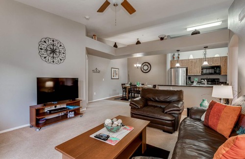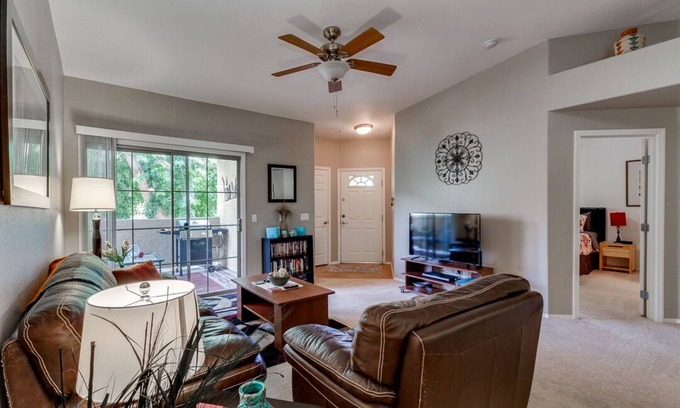Meal preparation is a breeze in the fully equipped kitchen, complete with modern appliances like a refrigerator, microwave, dishwasher, and coffee maker. After a day of adventure, unwind in the open living area or step out onto the balcony with patio furniture, where you can soak up the beautiful Arizona weather.