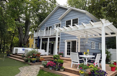 Set in the perfect location for all that is happening in Ann Arbor or Ypsi, the house provides a great place for families or friends to gather. The spacious back yard invites all to dine al frescoe, practice putting, warm up near the firepits on chilly evenings, or compete in a friendly game of foosball. The tiki bar offers a great place to enjoy beverages and unwind.