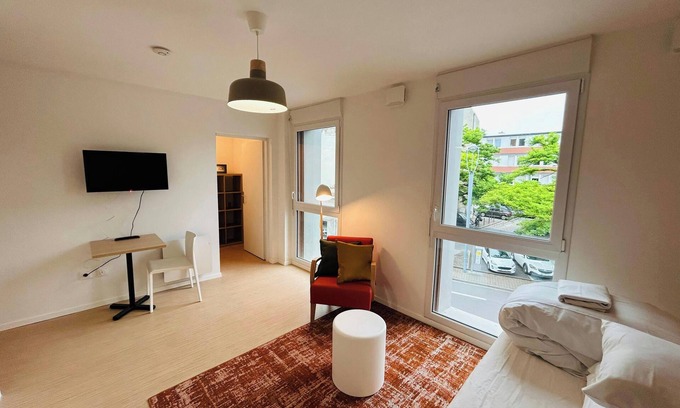 Discover our superb furnished studio in a new building, ideally located in the city center of Reims. Perfect for short, medium or long stays, this studio offers modern comfort with all amenities included.