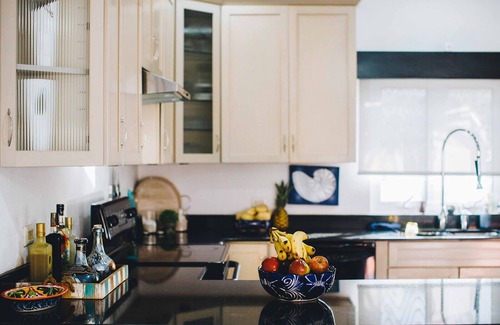 Fully Equipped Kitchen: Cook with ease in the modern kitchen featuring modern appliances, granite countertops, and everything you need to prepare meals including spices. Coffee is included