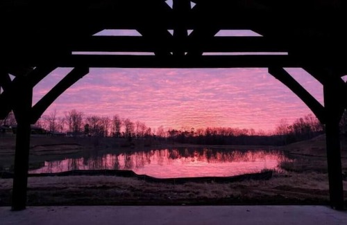 The Waterfront and Overlook Pavilions both feature stone fireplaces (stocked and managed for you), vaulted timber ceilings and views of the Blue Ridge Mountains above Woodville Lake.