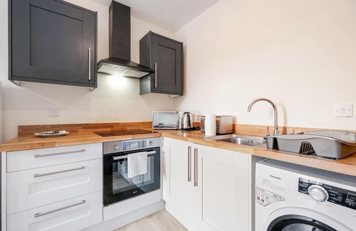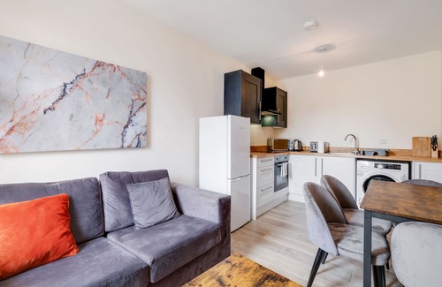Our Modern 1 bedroom 1 Bathroom Apartment is a bright, modern, spacious apartment perfectly situated in Wednesbury Town Centre, few minutes drive from Junction 9 M6 and 15-20 drive to Birmingham Centre. The apartment has 1 family bathroom. The kitchen is well equipped and has seating for dining and the living room has Smart TV, Amazon Alexa, and free Wi-Fi. The apartment is on the first floor with a stair case and lift. There is also allocated parking space in a private car park.