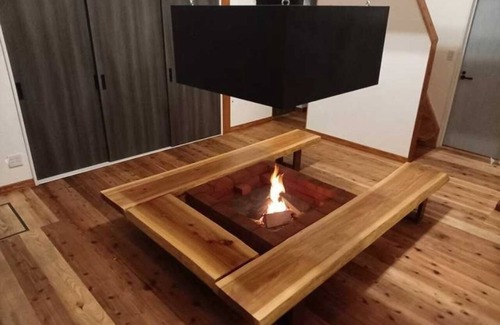 The Cord Wood House Flat features an array of amenities tailored for your comfort and enjoyment. As the first building in Japan constructed from piled firewood, it boasts spacious interiors that invite warmth and togetherness, perfect for pre-wedding preparations and post-ceremony celebrations. The property includes indoor hearths for cozy bonfires, BBQ facilities for delightful outdoor feasting, and a specially designed stone bath that mimics a cave, providing a unique retreat for relaxation. Surrounded by lush greenery, wild rabbits, and a clear starry sky, every moment spent here becomes delightfully memorable.