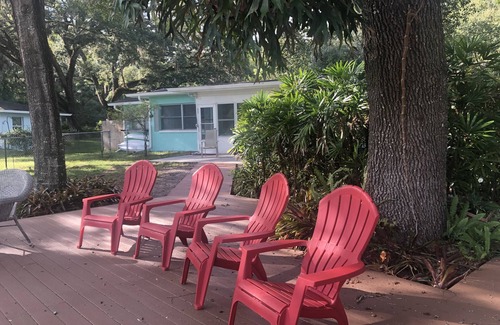 The home has recently been beautifully remodeled and decorated. The living and dining space flow through oversized sliding glass doors into the enclosed and finished Florida room. The panoramic views through the floor to ceiling windows beg you to step outside to enjoy the breath taking views first hand of the winding river. The large wooden deck sits over the rivers edge. Stairs just off of the deck allow you direct access down into the cool blue waters so you can enjoy kayaking, paddle boarding, swimming and more right from your back yard. There are 4 - single person kayaks for you to enjoy.