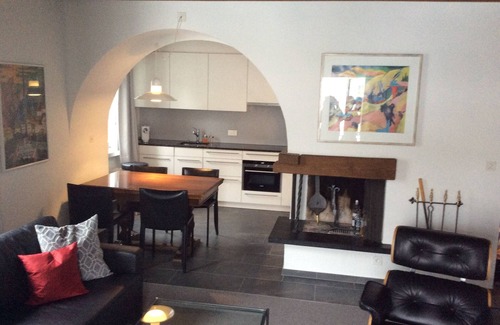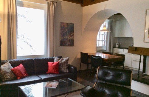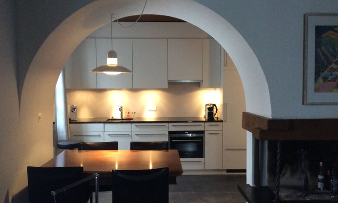 Modern renovated apartment. Elevator to top floor. Livingroom with fireplace, Bedroom with double bed , bathroom, fully equipped kitchen, balcony. Top floor in a historic building on main Promenade Street. 10 min walk to Congress Centre. Close to Hotel Schweizerhof, Posthotel, Hotel Europe, restaurants and Shopping, Coop and Migros grocery stores, Busstation 3 Minutes walk, Skilifts, Casino