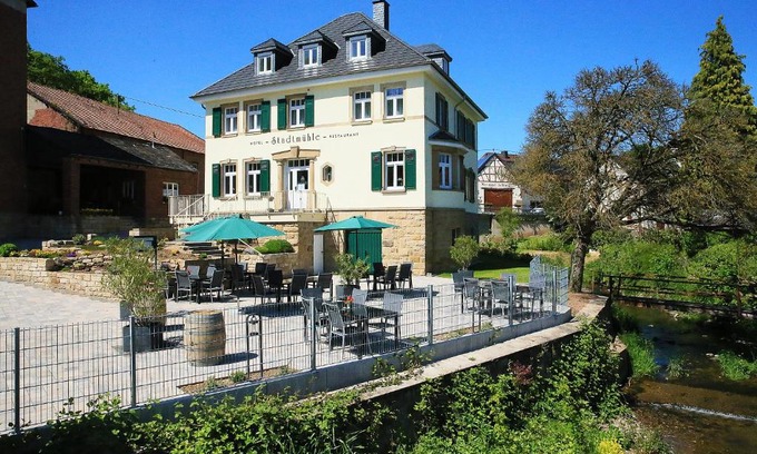 Weinhotel Stadtmühle beim Weingut Schauß provides rooms in Monzingen. There's a private entrance at the apartment for the convenience of those who stay. The apartment offers rooms with air conditioning, free private parking, and free Wifi. At the apartment complex, the units are fitted with a desk, a flat-screen TV, a private bathroom, bed linen, and towels. Some units also have a well-equipped kitchen with an oven, a fridge, and a stovetop. At the apartment complex, all units are allergy-free and soundproof. A selection of options including fruit, juice, and cheese are served for the buffet breakfast. Guests can also relax in the garden or on the sun terrace. Frankfurt-Hahn Airport is 26 miles away.