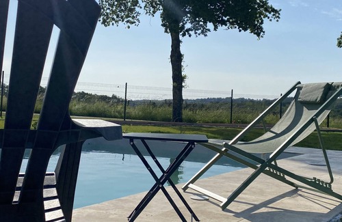 In the heart of the Château Roc de Montpezat vineyard (in organic conversion), you will appreciate the calm, the view of the valley, the vineyard and the Château de Montaigne (10min away).