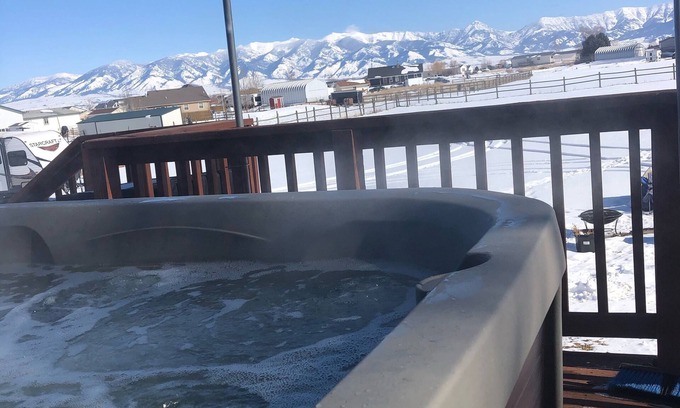 Breathtaking Views: Enjoy stunning vistas of the Bridger Mountain Range from the hot tub on the back deck, providing a picturesque backdrop for memorable moments throughout your wedding weekend.