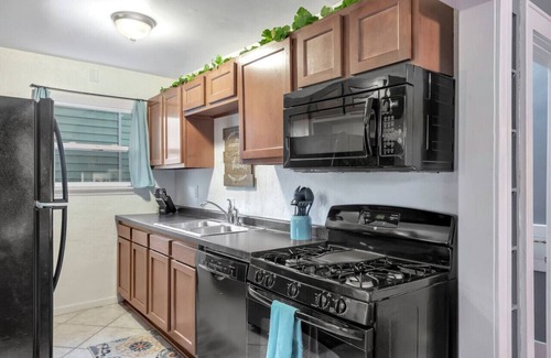 Home away from home! Cozy comfort with wood floors and stone tile, newly modernized kitchen, & master bedroom (REST Performance mattress) with deck& bath on 1st floor. Upstairs are two bedrooms & another full bath. Fenced-in backyard. Washer/dryer. Pets can stay if you check with us first ($25 fee). Dogs must be in a crate when you are not at home.