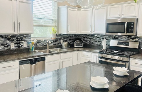 Welcome Home! This two story and fully updated basement will meet all your needs. Can you imagine a home with 6 car parking plus additional parking on the end street, 6 bedrooms all equipped with smart TV’s, 11 beds, 3.5 bathrooms, 2 Fully loaded kitchens, 2 on site laundry rooms, and a oversized backyard for all of your family fun (seating area with fire pit, BBQ grill options, and bouncy house upon request for the kiddos). This home will truly not disappoint!!!!! There is no garage access. It is used for storage.