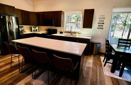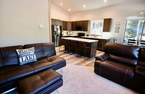 Discover and vacation at this lovely modern mountain gem in Seeley Lake, Montana. This charming house features a king bed, queen bed, and three twin bunk beds for children. The living room offers additional sleeping space with a foldable double futon and a large comfortable sectional sofa with four recliners. Make incredible Montana memories, as this home has 2 separate bathrooms equipped with a bathtub, two shower, and a washer & dryer, making you feel right at home.