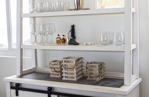 The only thing as impressive as the kitchen inside, is the one outside! A large Napoleon grill and all of its accessories are perfect for outdoor cooking. Whether its you, one of your guests, or a hired chef, everything served right off the grill can be enjoyed right outside on a 2,000 square foot deck that has ample seating and stunning ocean views. A place to sit and enjoy a meal is not something you’ll struggle to find at 2Hoty— you can enjoy a meal at the 8-person indoor dining table, soak in the sun with outdoor patio dining suite, or find some shade under the dining suite’s awning. There’s also plenty of space to lounge and enjoy the sun around the saltwater pool, where you can nap on a sunbed, hammock, or tanning ledge, replenishing your body with some much-needed vitamin D.