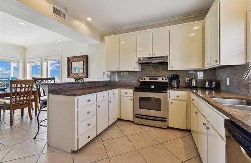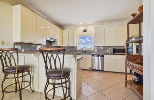 AMENITIES: Multiple TVs, well equipped kitchen with granite countertops and stainless appliances, tile and luxury vinyl plank flooring throughout, elevator, private pool, covered porches, enclosed outdoor hot/cold shower, park-style charcoal grill, under-house concrete parking.