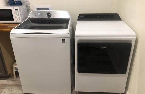 Shared laundry with full-sized washer & dryer.