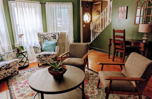 Cook up a meal and dine al fresco on the patio, or gather in the spacious living room for unhurried conversations. Curl up with a book or enjoy a movie night on our Roku-equipped HDTV. For those who need to stay connected, we offer high-speed WiFi, dedicated workstations, and plenty of charging spots throughout the house.