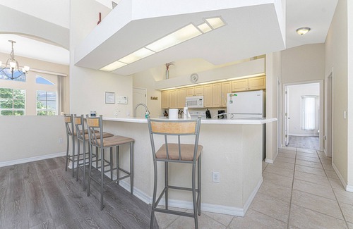 The large open concept kitchen is an entertainers delight with dinning room just off to one side or if you would rather eat outside, the kitchen has a pass-through to the lanai. The living room will draw you into the house from the foyer with a spectacular view of the pool area. The second bathroom can be access from the pool lanai area as well! BONUS! Fully equipped with ensuite laundry, four (4) bikes for touring around this amazing area, and beach accessories, oh by the way, the beach is a ten (15-20) minute drive from this property.