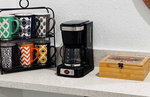 High dining table for 4 people, near our bar area with coffee and tea, plus some snacks we leave for you. ☕🍵🍪