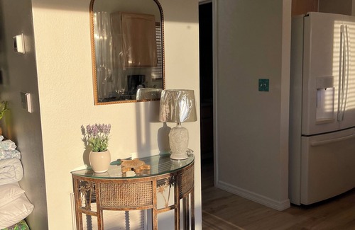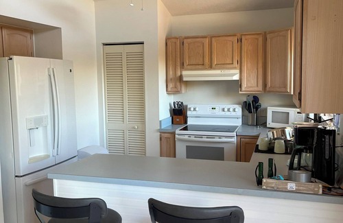 - Spacious kitchen generously equipped for all your meal prep/cooking needs (including handy small appliances: microwave, toaster oven, regular toaster, blender, Cuisinart hand mixer and an Instant Pot!); built-in ice maker in fridge. There is a designated coffee area that includes a regular coffee maker/1-cup machine, coffee grinder, and a Keurig K-Express (pods not included).