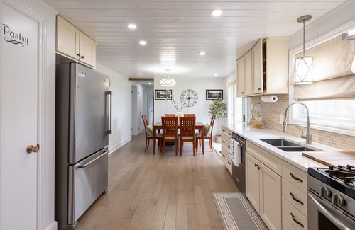 This 6-bedroom, 2-bathroom rental features a living room, a BBQ grill, a fireplace, and air conditioning. You can also use the jetted bathtub, plus other bathroom amenities like towels, shampoo, and soap. The kitchen is equipped with an oven, a stovetop, and a refrigerator, as well as a coffee maker, an electric kettle, and a microwave. And because there's a washer and dryer, you can go a bit lighter on your packing.