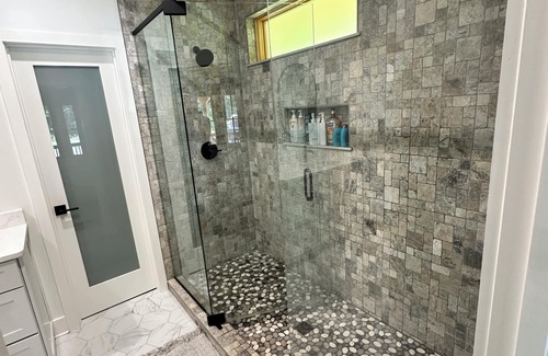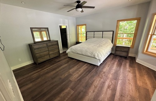 We spared no expense in designing and building our home. All of the appliances and finishes are what we considered our “dream home”. Unlike most rentals, we never considered turning a profit, instead we thought what kind of home would we want to stay in if we had a choice. The wrap around deck gives you a large outdoor space to enjoy during your stay regardless of weather conditions. The deck truly makes the home more magical.