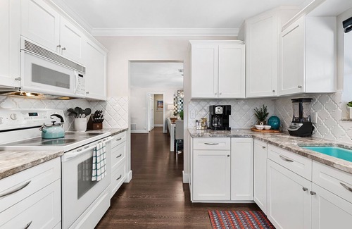 Located close to beaches and all that Fort Lauderdale offers, your happy spot awaits. This eclectic spacious home has plenty of room for all. A family room with smart tv and dining for six, a well-stocked kitchen complete with breakfast bar, dining for four, and wine fridge. The master king bedroom has smart tv, plenty of closet space, and an ensuite. Two queen bedrooms have smart TVs and share a full bath in the hall. Outside are where a happy daze are made, with a heated pool that gets full sun and covered and uncovered lounge areas, a beautiful outdoor kitchen equipped with a gas grill, and dining for six. A beautiful tropical mural is a great conversation piece visible from the pool and couch lounge area. Welcome to your happy place, welcome to "Happy Daze"!!!