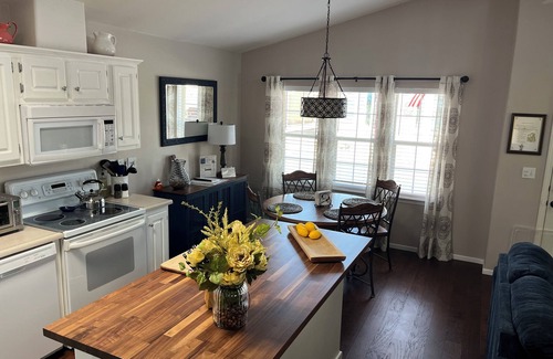 Welcome to our new vacation rental! A beautiful comfortable serene 2-bedroom with 2-bath home on a 5-Star, 55+ resort located just walking distance to shopping, restaurants, and salon. Three onsite pools (they're building a 4th one, hot tub, gym, racquetball, tennis courts, pickleball, horseshoes, baseball diamonds, woodworking shop, cardio room, massage therapy, billiards and so much more open to use for renters to enjoy their stay in our home. Including 2 adult 3-wheel bikes to get around!